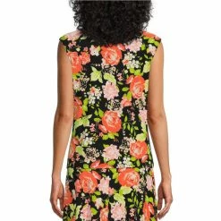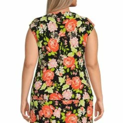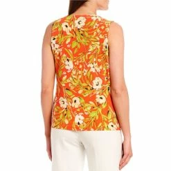 Buy โญ Kasper Floral Print Pleated Keyhole Jewel Neck Sleeveless Top Bright Papaya Combo ๐