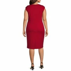 Cheapest โ๏ธ Kasper Plus Size Split Round Neck Sleeveless Sheath ๐ Dress Fire Red ๐