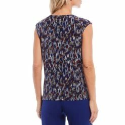 Best Pirce 👍 Kasper Petite Size Scattered Dot Print Keyhole Cap Sleeve Top Twilight Blue Multi ✔️