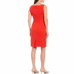 Budget ๐ฅ Kasper Petite Size Stretch Crepe Square Neck Sleeveless Pencil ๐ Dress Scarlet ๐