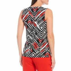 Cheapest ๐ Kasper Petite Size Geo Stripe Print Sleeveless Pleat Neck Knit Cami Scarlet Multi ๐