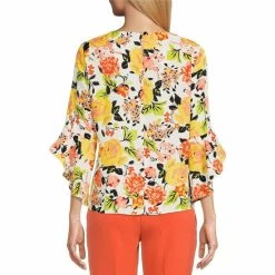 New ✨ Kasper Petite Size Printed Boat Neck Bracelet Sleeve Tie Front Top Black/vanilla Ice 👏