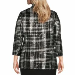 Flash Sale 🎁 Kasper Plus Size 3/4 Sleeve Shawl Collar Metallic Plaid Jacket Black/silver ✨