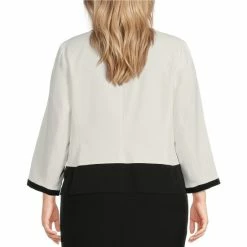 Discount ❤️ Kasper Plus Size Linen 3/4 Roll-Tab Sleeve Shawl Collar Open Front Jacket Papaya/white 🔔