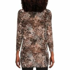 Cheapest 🤩 Kasper Knit Cheetah Print Round Neck 3/4 Sleeve Tunic Chocolate/doe Combo ✨