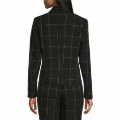 Deals 🥰 Kasper Plus Size Grid Print Notch Collar Button Front Coordinating Blazer Black Multi 🤩