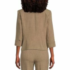 Wholesale 👏 Kasper Petite Size Front Zip Pocket Open Front 3/4 Rolled Sleeve Jacket Cypress Grey ⌛