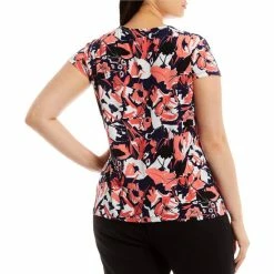 Hot Sale ๐ Kasper Plus Size Floral Print Short Sleeve Cowl Neck Top Luxe Salmon Combo ๐ฅ
